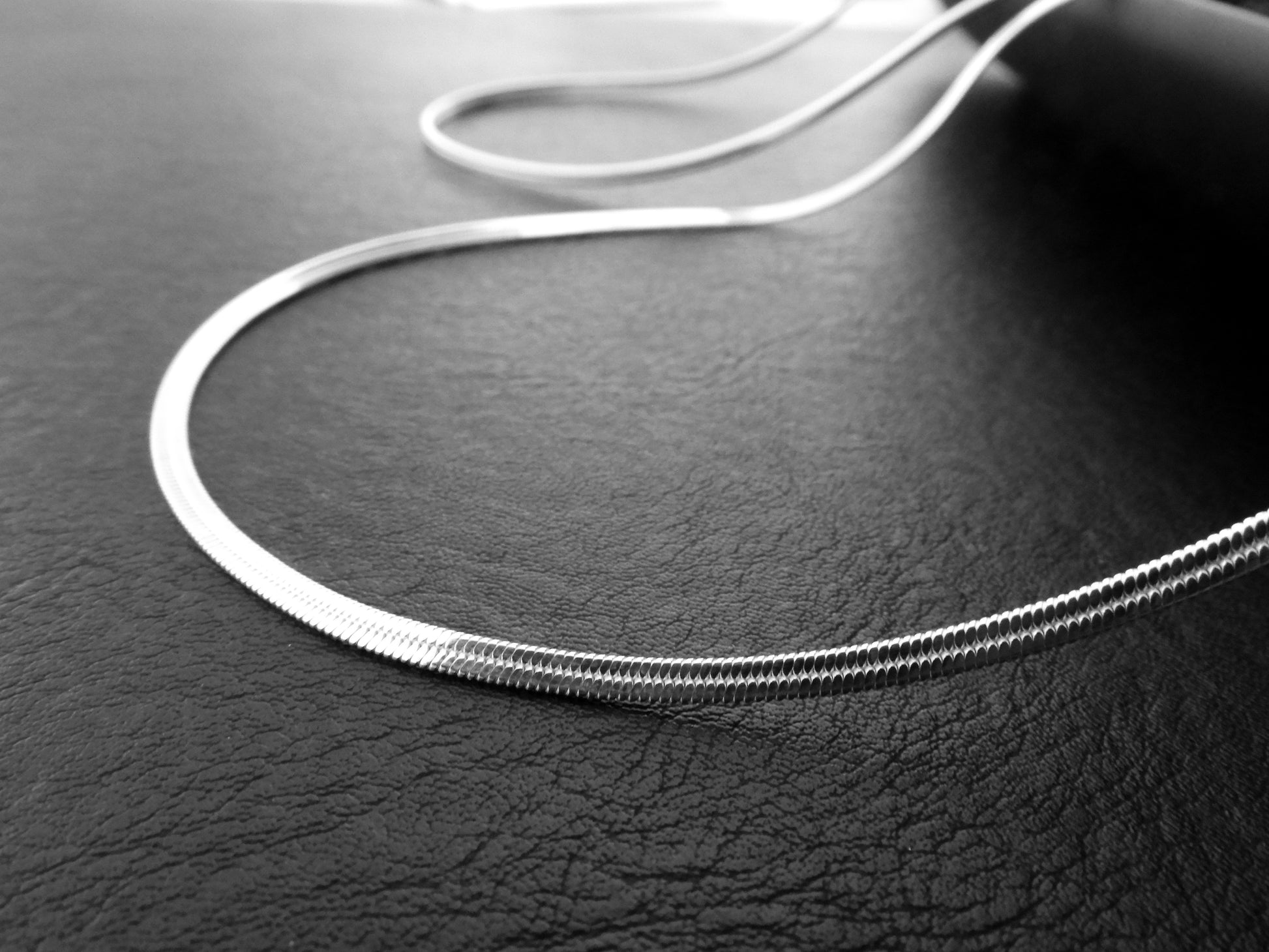 A timeless herringbone design. The refined flat 3mm necklace is beautifully worn alone or as an accompanying layering chain. An investment piece that adds a sophisticated touch.